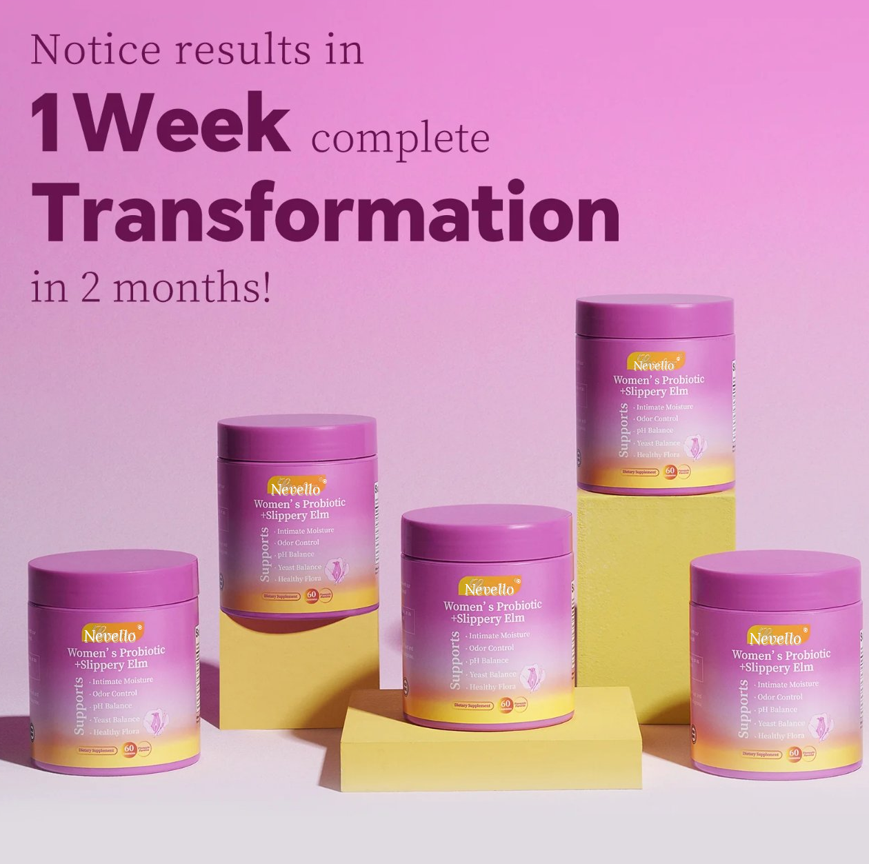 🌸 Supports healthy pH, odor balance, and vaginal comfort with Nevello's probiotic blend and XOS prebiotics